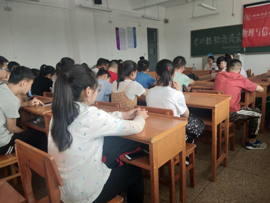此次交流会,邀请考研至陕西师范大学的李沐雨、中北大学的杨志秀为在场同学作考研经验分享。她们主要从考研院校的选择、时间的安排、专硕与学硕的区别等几个方面与同学们进行了面对面交流。交流现场同学们反响热烈,获益良多。