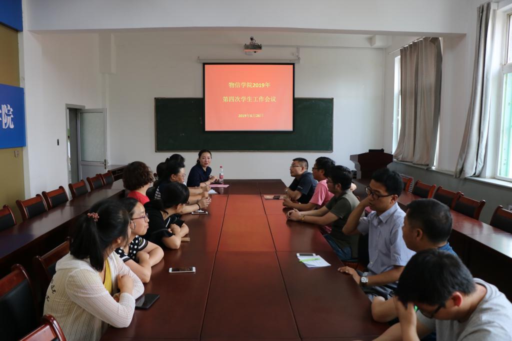2019年6月26日下午4:50,公司2019年第四次员工工作会议在四号楼二层会议室召开。公司党委副书记王玮、全体辅导员参加会议。会议由公司党委副书记王玮主持。