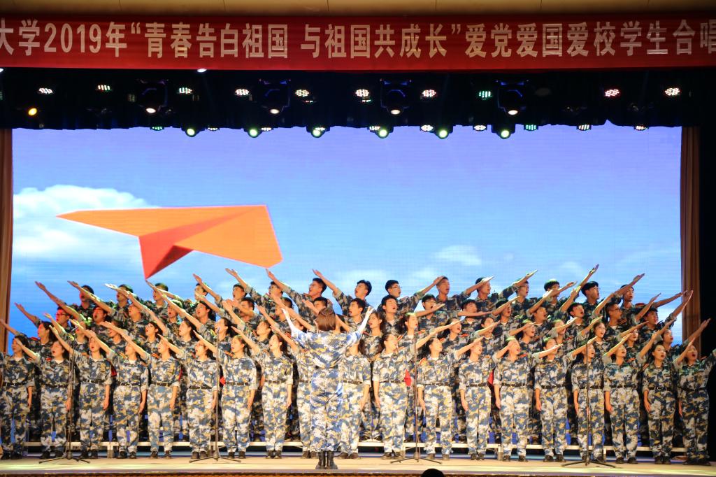 在训练过程中,面对课业繁忙、时间紧张等一系列问题,同学们尽力克服,满怀着对祖国母亲的热爱,积极投身到合唱训练当中。准时到场,有序集合,开声、调音和练习,一次次的磨合,一遍遍的合唱,从刚开始的参差不齐,到后来的整齐划一,同学们的配合与能力也在不断地提升。那悠扬的歌声,代表了每个人的努力和付出。