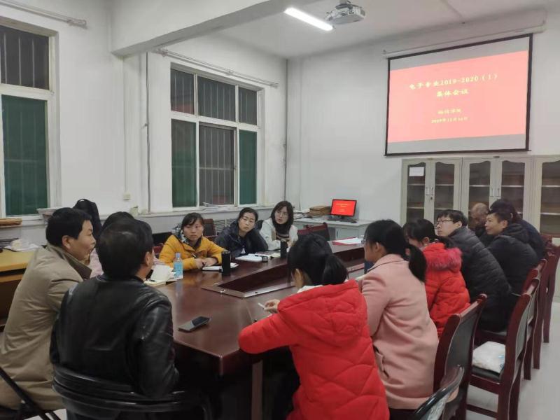 2019年11月14日下午公司电子专业在四号楼一层会议室召开了2019-2020第一学期集体会议。会议的主要内容有:2019-2020(2)排课安排汇报和专业课程组建设、毕业设计的要求和审核工作、一流专业建设、员工实习安排及导师制相关问题。