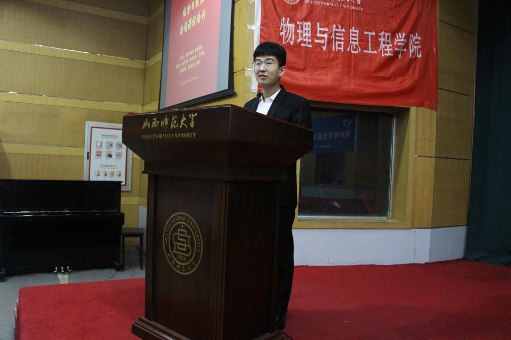 公司团委员工会赵欣宇致辞。他代表EMC易倍团委员工会对临汾日报领导老师们的到来表示热烈的欢迎。同时他希望同学们能在此次培训中学习到知识、学以致用。