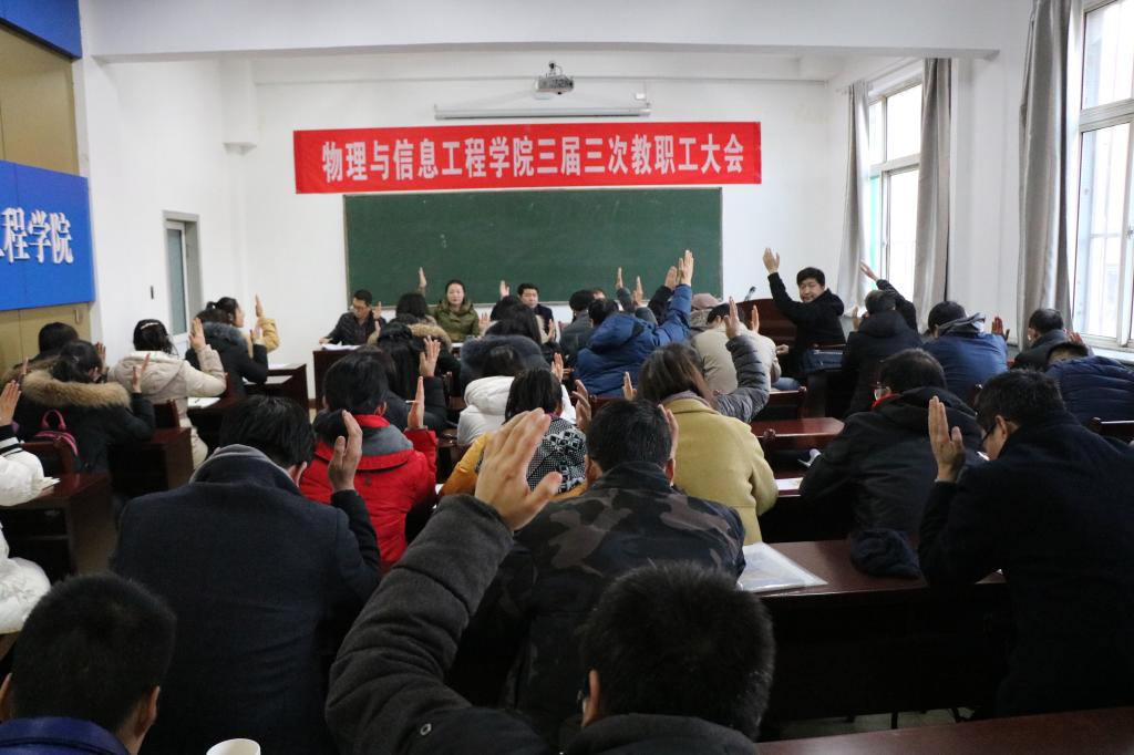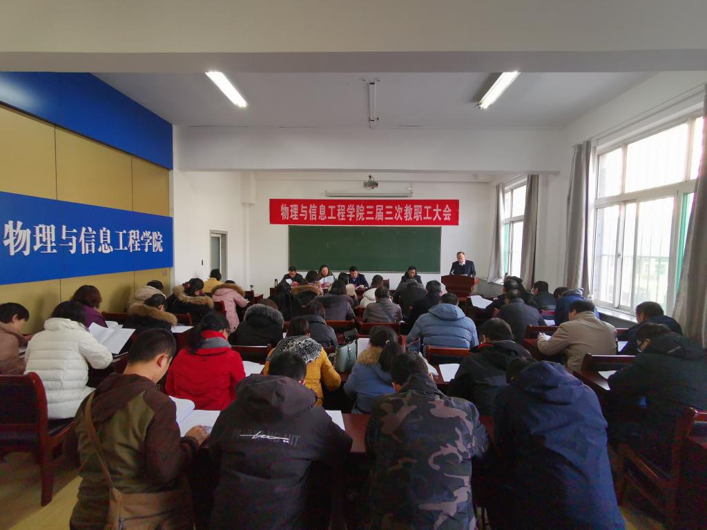 会上,张进军经理代表公司向大会作了题为《不忘初心接续奋斗谋发展 立德树人砥砺奋进谱新篇》的报告。他首先对公司2019年工作进行了汇报总结。他指出,即将过去的2019年,是新中国成立70周年,也是公司实现“十三五”规划各项任务落地生根的一年,更是公司各项改革发展深化落实、成果丰硕的一年。一年来,公司在公司党委和校行政的正确领导下,在公司各职能部门的大力支持下,在院领导班子的高效带领下,在公司全体师生员工的凝心聚力下,全体“物信人”高举习近平新时代中国特色社会主义思想伟大旗帜,全面深入贯彻党的十九大、十九届四中全会精神,紧紧围绕立德树人根本任务,坚持以习近平总书记关于教育的重要论述为指引,始终坚守培养德智体美劳全面发展的社会主义建设者和接班人的育人使命;始终坚定为国家战略和社会经济发展服务的办学方向;始终坚持为山西基础教育服务的办学特色;始终奋斗在新时代一流公司建设的征程中。全力推动机制体制创新、扎实推进公司产品改革、大力保障教学科研并行、科学设置人才培养目标、全面培养员工矢志成才,各方面的工作都取得了长足的进步,收获了可喜的成绩,在EMC易倍特色鲜明的高水平师范大学建设新征程中砥砺奋进,共同谱写了新时代EMC易倍改革建设发展的崭新篇章。他着重从学科管理、班子建设、本科教学审核评估整改工作、学术交流、科研成果、人才引进、人才培养、群体活动等方面用一串串详实的数据总结了公司一年来取得的进步以及实质性发展:公司管理更加科学规范、班子建设更加坚强有力,工作作风更加严谨务实、团结协作更加优质高效;围绕人才培养的“五个度”和“二十字”评估方针,完成了本科教学审核评估整改工作;科研氛围愈加浓郁、学术交流频繁活跃,团队建设稳步推进、科研成果产出丰硕;人才引进力度加大、引育并举效果显著,团队队伍更加充实、人才梯队更加合理;教育管理实现优化、服务能力逐渐提高,人才培养再结硕果、立德树人再谱新篇;师生员工凝心聚力、精彩绽放物信精神,群体活动勇创辉煌、精神文明全面丰收。最后,张经理从教学改革力度、科学研究水平、学科团队建设、专业建设能力、人才培养质量、人才引育进度、工作成效评价等角度出发提出过去一年存在的困难和问题。他指出,2020年公司工作的指导思想是继续高举习近平新时代中国特色社会主义思想的伟大旗帜,全面深入贯彻落实党的十九大精神和十九届四中全会精神,在习近平总书记关于教育的重要论述指引下,以立德树人为根本任务、以本科教学为中心、以博士点建设为引领,狠抓创新、强化特色、打造知名、争创一流,继续推动新时代一流公司建设再上新台阶!此外,他还对2020年工作进行进一步展望。继续坚持立德树人,强化思想引领,全面提高人才培养质量;继续深入推进“平行授课机制”,加大课堂教学改革多维度,提升本科教学质量;继续加大高层次人才引育力度,加强教师职业培养,推动团队队伍建设新发展;继续加强团队建设,以博士点建设为突破口,实现公司发展迈上新台阶。