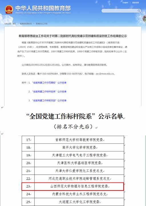 公司党委入选教育部第二批“全国党建工作标杆院系”