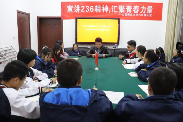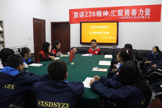 2020年10月21日下午,236爱心社成员受邀赴EMC易倍实验中学进行了宣讲交流活动,活动在实验中学党员活动室中展开,实验中学高一各班团支书参加了此次活动。