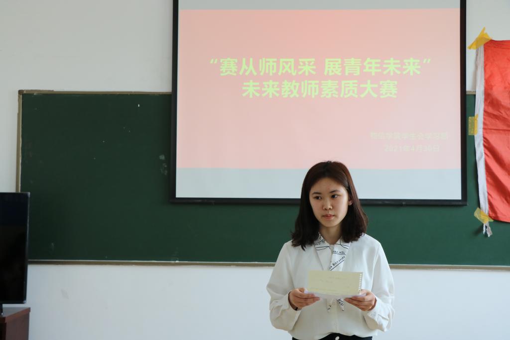 此项赛事吸引了众多同学的关注和参与,经过各班初赛的选拔,有十六名选手进入到复赛环节,经过复赛的激烈角逐,八名选手参与了最后的决赛。比赛中,选手们在赛场上各展风采,联系生活实际、生动形象、深入浅出地讲解了“自由落体运动”、“牛顿第二定律”、“摩擦力”等课题内容。有些选手在讲课过程中加入了小游戏讲解概念;有些选手自己动手制作简易实验器材为讲课增添风采;有些选手通过生活中的真实经历来讲解其中蕴涵的物理知识,展示出了较好的专业素养与积极认真的精神风貌。通过模拟授课、即兴演讲等环节的比拼,选手们的备课能力、教学能力、心理素质等各个方面都有了很大的进步和提升。