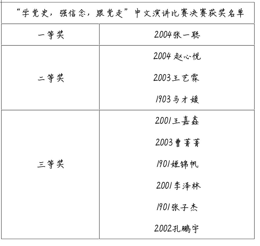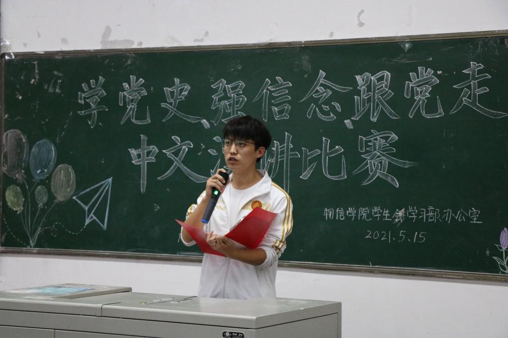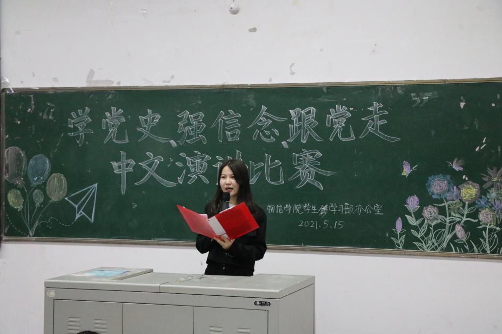 在喜迎中国共产党成立100周年之际,为使同学们进一步了解党的百年历史,感悟今天幸福生活的来之不易,坚定永远跟党走的信念与决心,公司团委员工会于近期开展了“学党史,强信念,跟党走”中文演讲比赛。5月15日,公司在05203教室进行了此次中文演讲比赛的决赛。公司党委副书记王玮、院团委负责人马丽娜、院专职组织员郭桂春担任了本次比赛的评委。