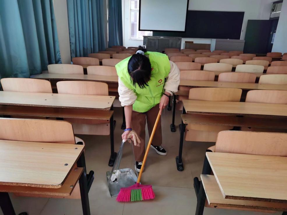 活动中,志愿者们仔细擦拭讲桌上的粉笔灰尘,认真清理课桌内垃圾、清扫地面,大家合理分工、相互配合,很快就完成了清扫任务,把一个干净整洁的教室呈现在大家面前。“希望明天上课时,老师和同学们来到教室会感觉到舒适和开心”,一个志愿者朴素的话语代表了所有参与活动志愿者的心声。