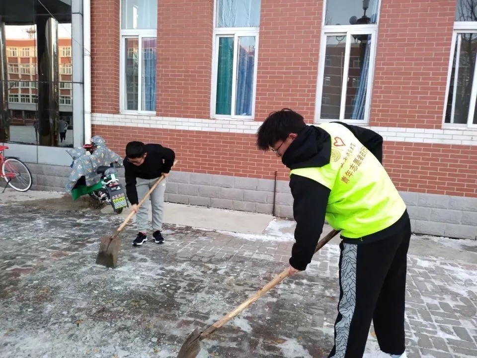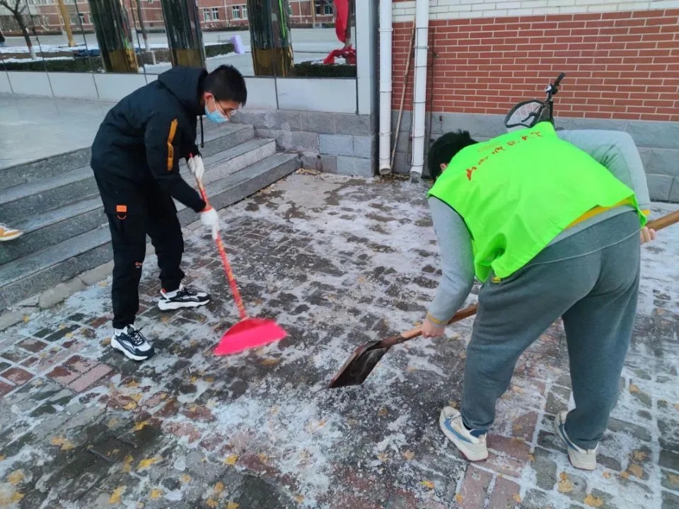 活动中,志愿者们分工明确、互相配合,有人拿铲子、有人拿扫帚、有人扛铁锹,一铲一扫一推,干得热火朝天。尽管寒风料峭,但大家依然干劲十足,工作高效,仅两个小时就完成了规定范围内的地面积冰清除工作。