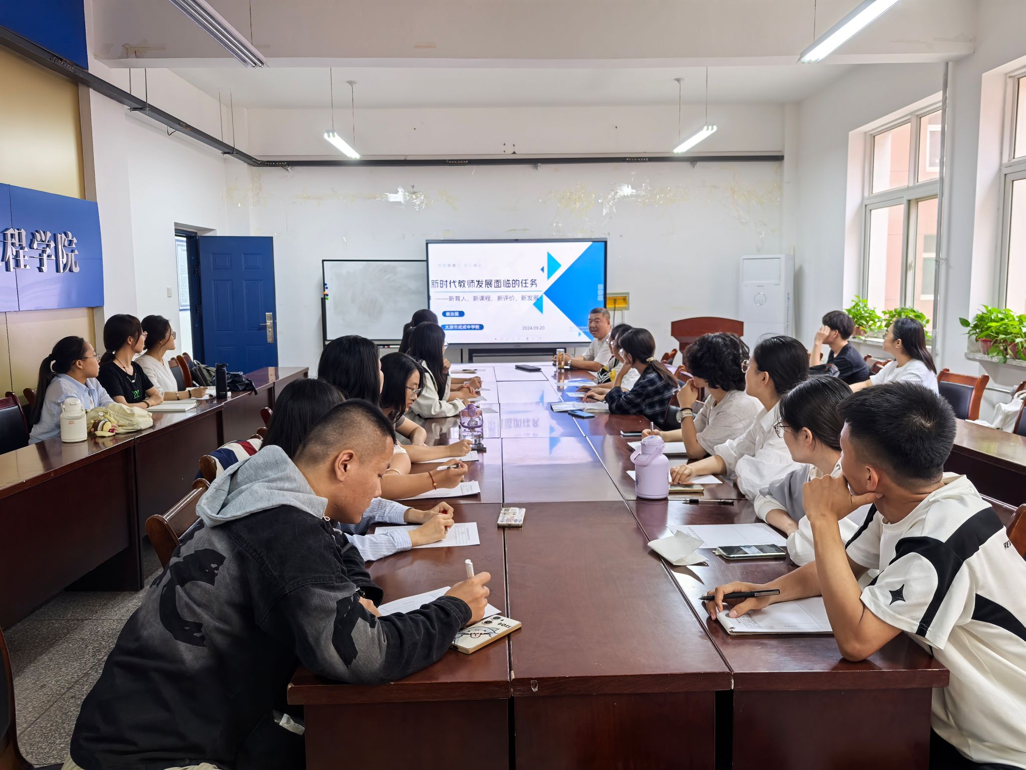 9月20日下午,公司邀请公司优秀员工——太原市成成中公司特级教师崔治国作题为《新时代教师发展面临的任务》的学术报告。本次报告由副经理李俊生主持,22级、23级卓越班和公费师范生部分员工聆听了报告。