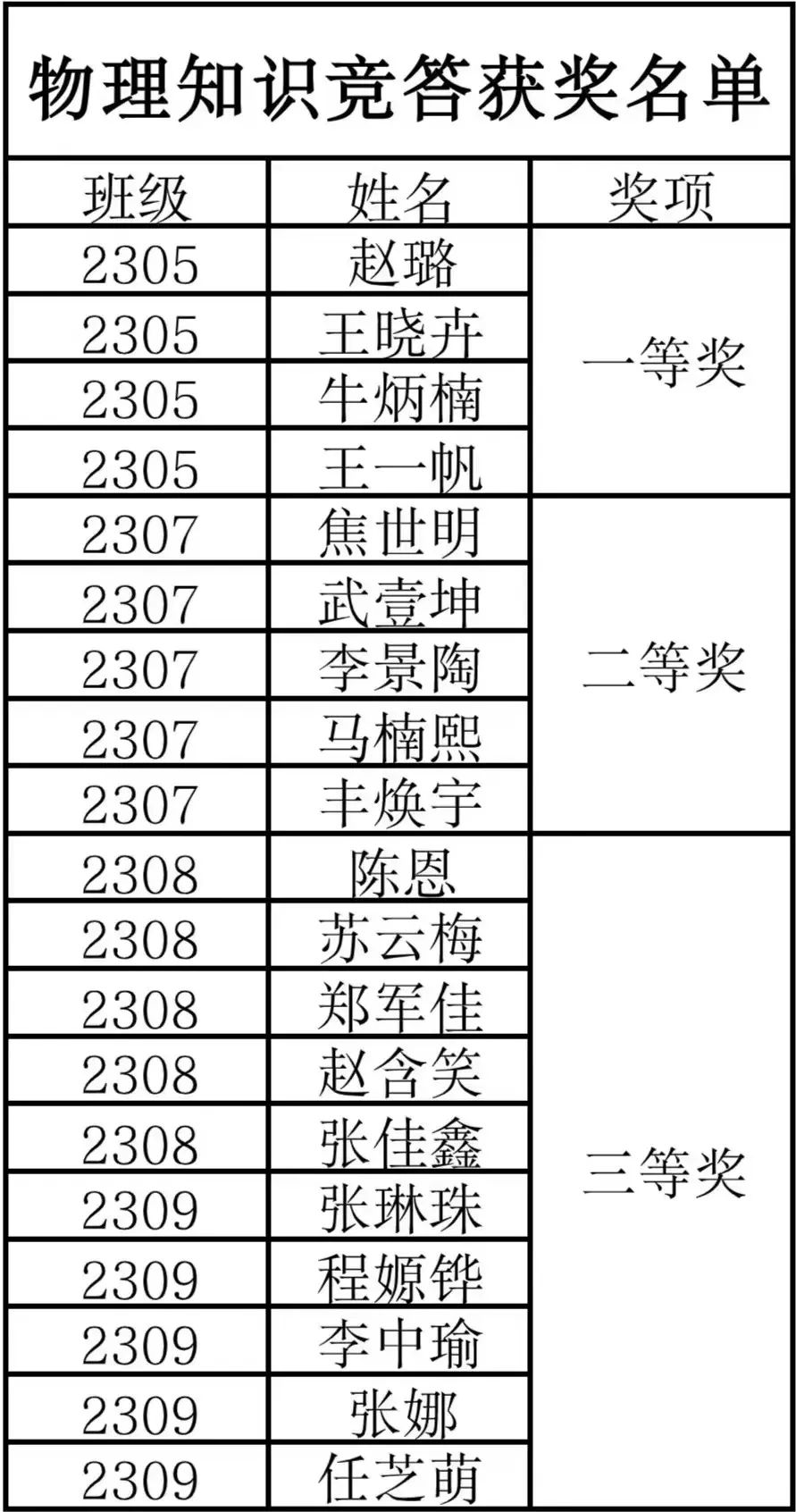 获奖情况如下: (文/2306班 薛妙青 摄/2308班 张振宇)