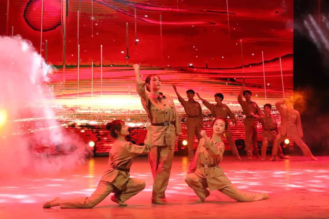 音诗画《红铁》动人心扉的语言下,晚会进入第一篇章——思想火花。群舞《英雄赞歌》、话剧《战火中的老员工》描述了战争时期无名英雄们的光荣事迹。歌曲《一荤一素》、诗歌朗诵《我相信》以及唢呐舞蹈《秧歌》展现了如今平淡幸福的美好生活和对祖国未来的无限期待。