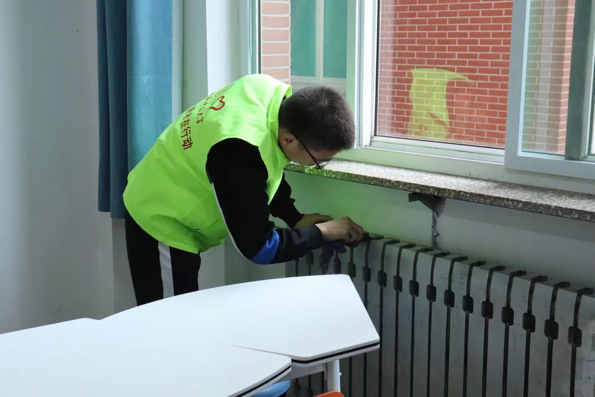 活动前期,志愿者们明确分工,按照一个志愿者清扫两个教室分配任务。活动中,志愿者们纷纷发扬不怕累、不怕脏、肯吃苦的精神,用抹布认认真真擦拭了教室里的窗台、暖气片、黑板、讲桌和多媒体柜,现场一派热火朝天的劳动景象。在所有志愿者的共同努力下,五号楼的所有教室一尘不染、窗明几净、焕然一新。