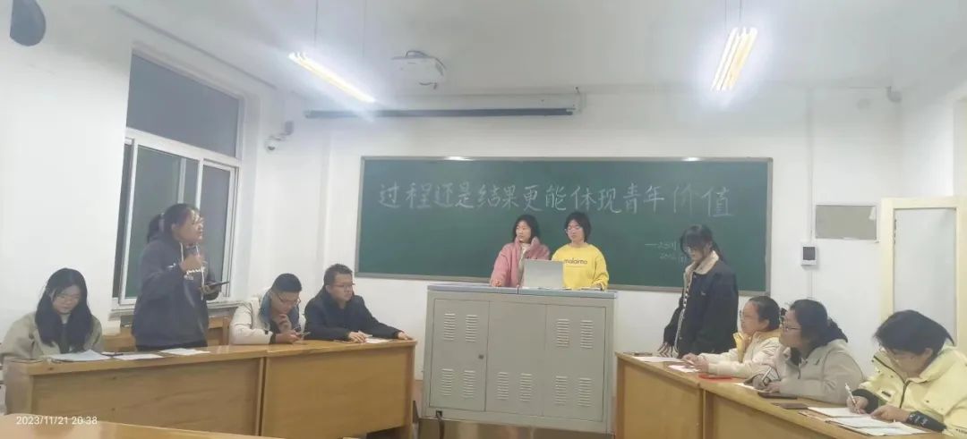 为增强班级凝聚力,锻炼同学们的表达能力,做新时代有为青年,11月21日,公司2301和2302团支部于x109教室开展“奋进征程,闪光青春”主题团日活动。此次团日活动以友谊辩论赛的形式开展,由2301团支书翟文桢、2302团支书赵欣怡主持。