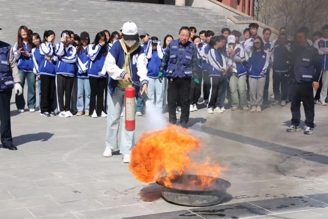 疏散演练完毕后,崔哲老师指出了同学们逃生过程中出现的问题,同学们认真听讲,将本次演练得到的教训谨记于心。随后,崔哲老师向大家展示了三类灭火器的正确使用方法,并强调了消毒面罩与灭火毯等消防设备的使用场景。接下来,大家在书香广场上模拟了真实的灭火过程,同学们踊跃参与,积极拿起灭火器灭火。现场氛围热火朝天,同学们的热情高涨,灭火技巧深入人心。