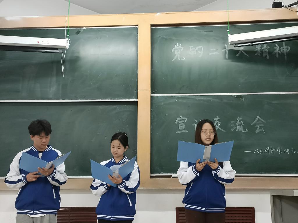 为了让同学们深入学习领悟党的二十大精神,立志做新时代有志青年,236爱心社精神宣讲队于3月28日在南区三号教学楼组织开展了“党的二十大精神”宣讲交流会活动。