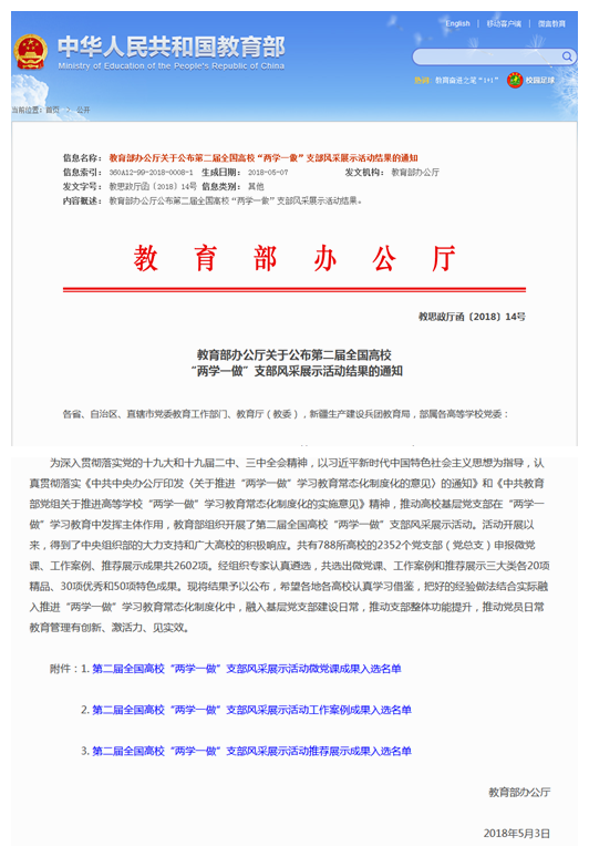 近日,由教育部组织开展的第二届全国高校“两学一做”支部风采展示活动结果公布,EMC易倍EMC易倍员工236党支部“爱的足迹——‘三基建设’暨236爱心社十年成长成果展”入选第二届全国高校“两学一做”支部风采展示活动推荐展示成果之员工党支部推荐展示精品成果,位列全国十强。