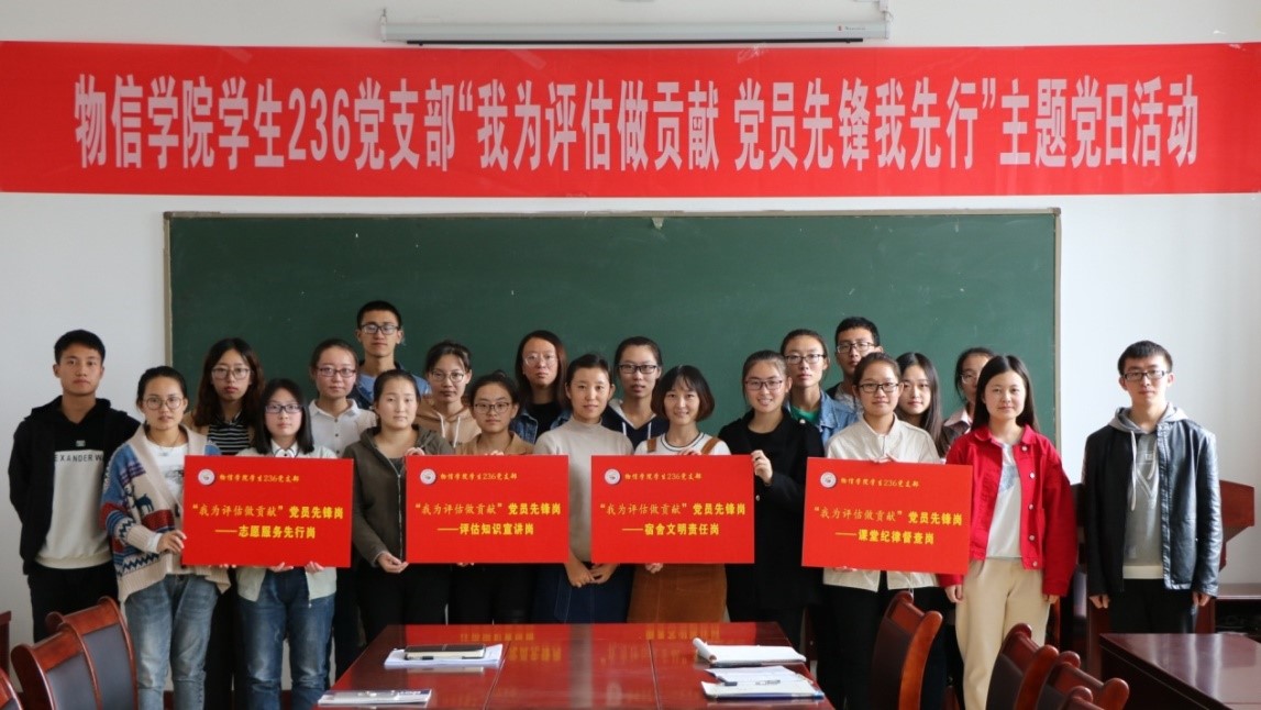 为进一步将评估工作内化于心、外化于行,236党支部专门设立“我为迎评做贡献”党员先锋岗之“宿舍文明责任岗”、“评估知识宣讲岗”、“课堂纪律督查岗”、“志愿服务先行岗”,举行了挂牌仪式,在课堂纪律监督、评估知识宣讲、测试等方面将发挥积极作用。