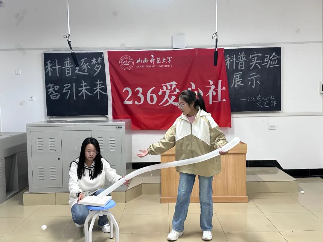 为了激发同学们对科学和实验的兴趣,激发创新思维,236爱心社于11月5日18:30在南区5102教室开展了“科普逐梦,智引未来”科普实验展示。236爱心社副社长张丹妮、236爱心社宣讲队负责人胡轩玮、236爱心社文艺部负责人李晔佳、乔卿卿、李慧慧等5位同学担任此次活动的评委。