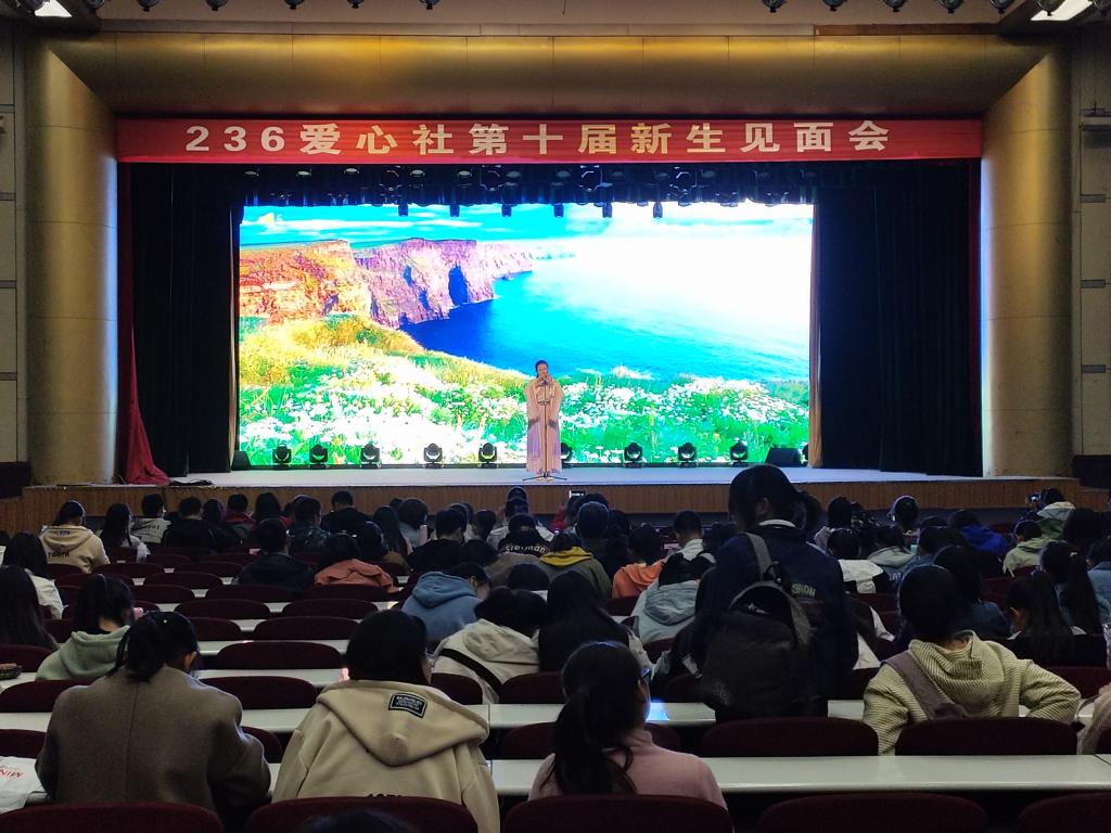 见面会上,社团指导教师岳文慧详细介绍了236品牌的发展历程。她说到,十二年来,一代代236人不忘初心,坚守信仰,倾情奉献,上海、北京成立分社,多次被国家级媒体报道、荣获多个国家级奖项,逐步实现了全国有名的目标。今年236爱心社纳新涵盖了一校区、体育公司和现代文理公司的员工,取得了新的突破,继续保持着全校纳新人数最多的社团,新鲜血液的注入必将使社团焕发新的活力。她对236全体成员提出三点希望与要求。一是要不忘初心,砥砺前行;二是要学会坚守,倾情奉献;三是要善于传承,勇于创新。