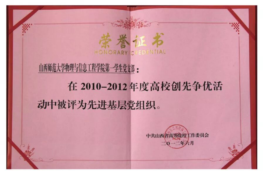 山西青年五四奖状
