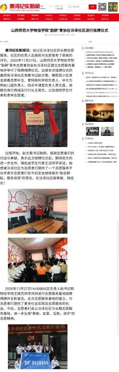 11月30日,黄河纪实新闻以“EMC易倍EMC易倍‘励耕’青协在汾泽社区进行挂牌仪式”为题报道了公司励耕青协在汾泽社区进行青年志愿者服务基地挂牌仪式的活动。