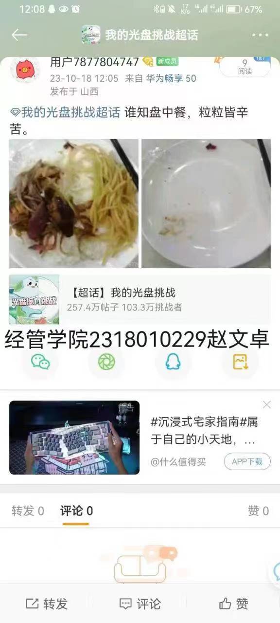 这次活动通过问卷及打卡的形式在大家心中树立节约粮食的观念,将节约粮食的思想刻到我们日常生活中的点点滴滴,坚守“粮”心,不负美好“食”光!