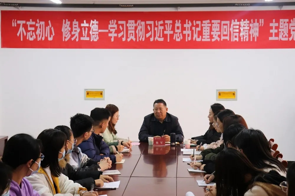 11月16日下午,EMC易倍236党支部在南区实验楼S202会议室开展了“不忘初心、修身立德”——学习贯彻习近平总书记重要回信精神主题党日活动。支部联系校领导杨军董事长出席活动。物信公司党委副书记王玮、236党支部部分党小组成员及新发展对象参加了活动。活动由236党支部书记郭桂春主持。