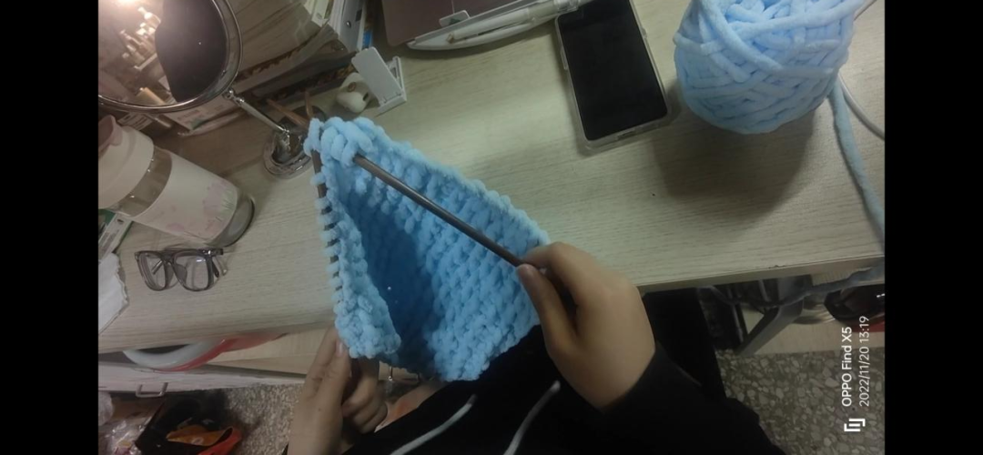 这次我有幸参加了“为爱穿针,以织传情”的活动,对于这次的经历,我感触颇深。我在之前从未接触过织围巾,而且听说是给山区孩子织围巾,所以便想要去尝试尝试。一共参加了两次培训,学姐们都非常的热情,手把手教我们如何去起针,如何织第二排,如何收尾,即使我做错了,学姐也会温柔耐心的教我。在不断的练习后,我终于学会了,很开心。然后便与我的另外两个舍友一起织围巾给山区的孩子。当一条蓝色的围巾出现在我面前时,是满满的成就感。