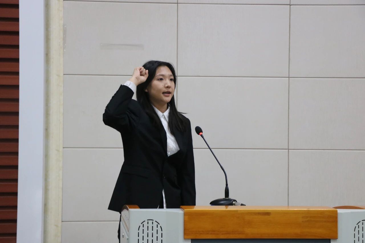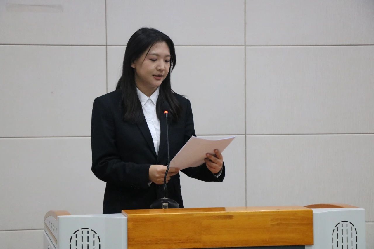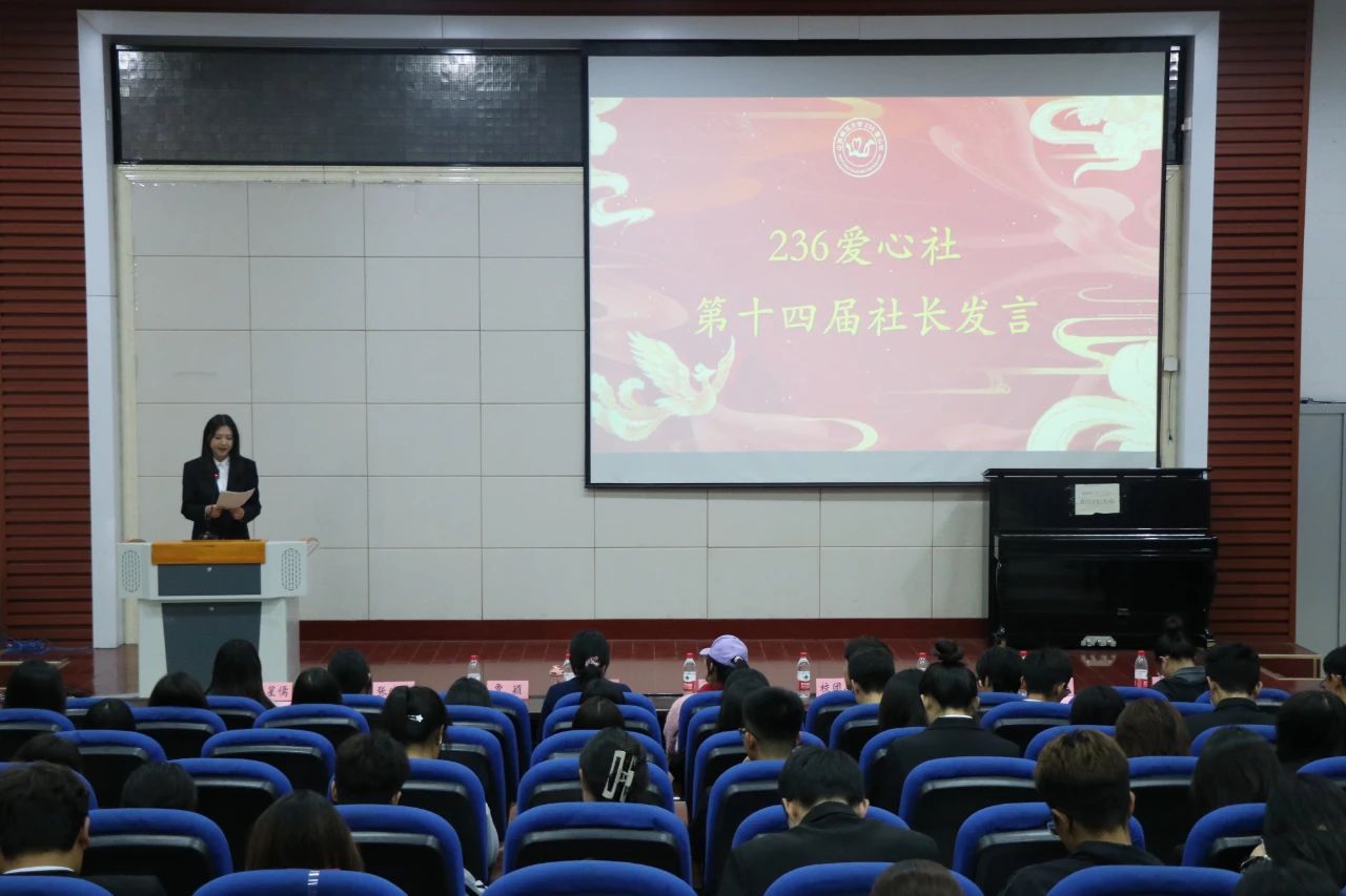 新任社长杨林进行了就职表态发言,她从自身经历出发,讲述了加入236爱心社的带给自己的成长,提出今后要坚定的传承和发扬社团优秀传统,也为今后如何探索236爱心社发展新道路进行了规划。