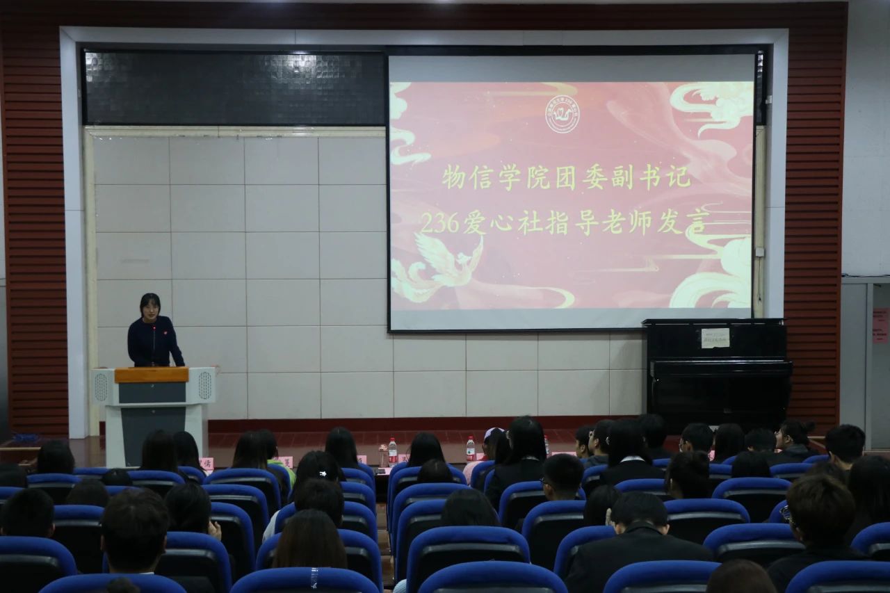 员工社团联合会执行主席苗嘉麟进行了发言,他对236爱心社新一届负责人们提出了希望:结合社团宗旨,深入挖掘社团内涵,继续把236精神带给师大的每一位学子。