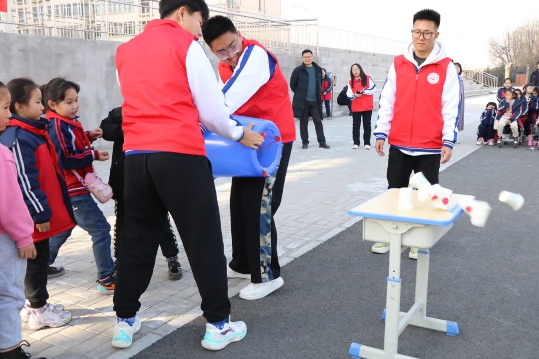 科普实验环节由236爱心社精神宣讲队胡轩玮负责讲解。蛇形摆实验的首展顿时吸引了同学们的注意,随后的空气炮、马德堡实验更是让大家连连惊叹,争相上场体验。在大家整齐的倒数声中,水火箭顺利升空,现场瞬间爆发了雷鸣般的掌声,将气氛再一次推上高潮。