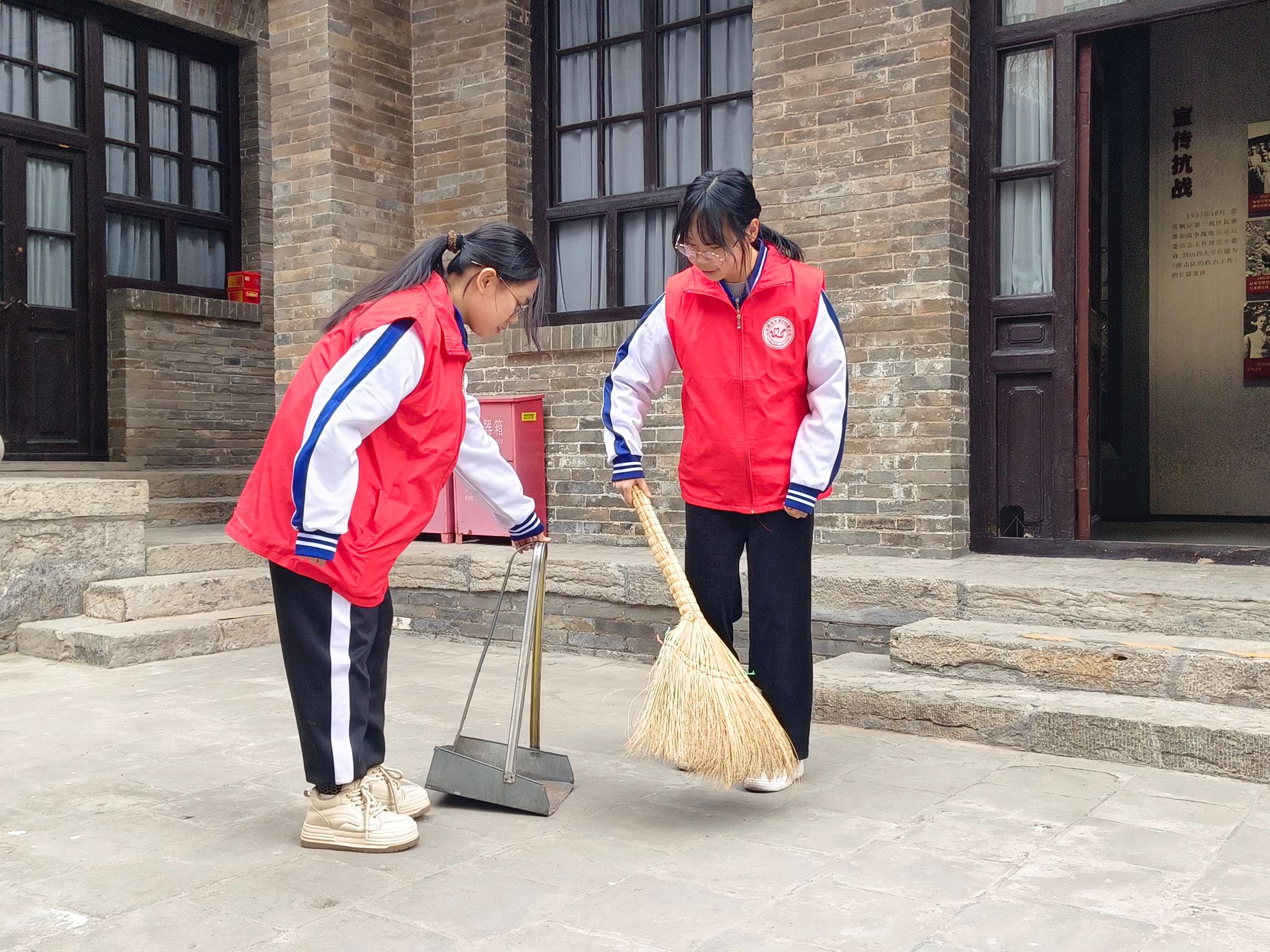 活动过程中,志愿者们分工明确,团结有序。第一组志愿者分别在旧址纪念馆入口、图书馆、会议室及五个展厅内进行了细致的讲解服务。讲解过程中,志愿者们通过调动自身知识储备,让参观者在目睹大量历史文物的同时感受那段艰苦卓绝的岁月中老一辈革命家和青年学子们不屈不挠、勇往直前的精神风貌。第二组志愿者对旧址纪念馆进行了清扫,他们认真清扫地面,擦拭展品,以保持纪念馆的整洁和庄严,让参观者能够更好地了解和感受纪念馆的历史和文化,让这片充满历史底蕴的地方焕发新的光彩。