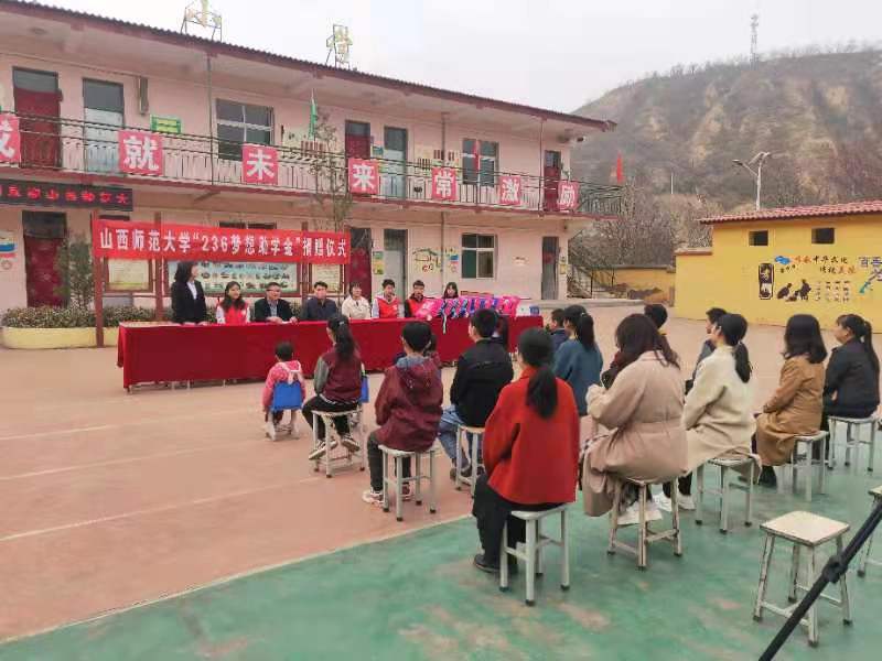 2021年是中国共产党成立100周年,为了让更多的人了解党的光辉历程,从中汲取中国共产党艰苦奋斗的精神。2021年3月17日,院团委负责人兼236爱心社指导老师马丽娜和4名236党支部党员赴党支部第三座梦想书屋所在地——大宁县三多中心小学,为孩子们捐赠梦想助学金、图书文具、爱心书包等,为山区孩子们送去了236党支部的温暖和关爱。公司党委书记陈向波出席了捐赠仪式。