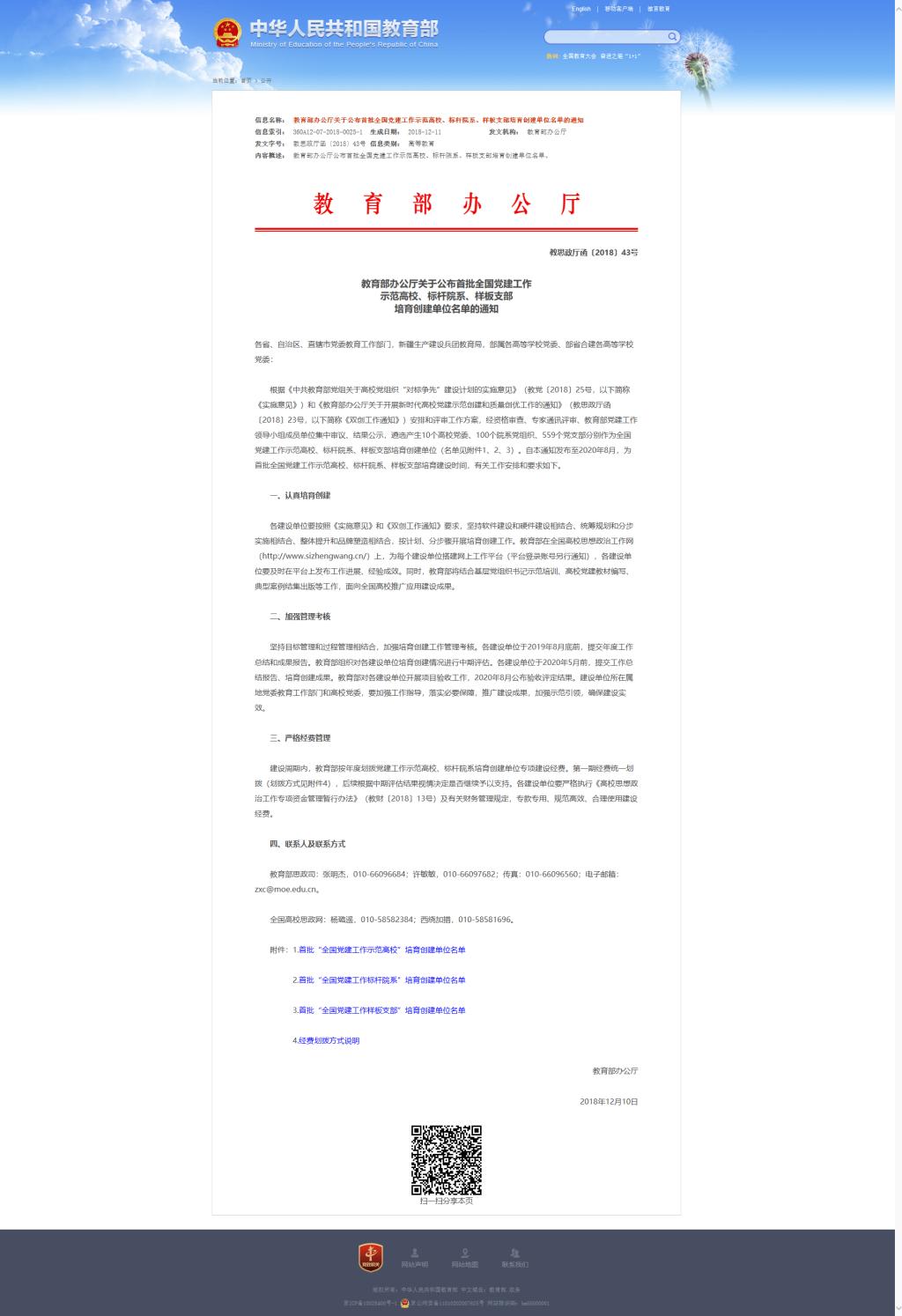 此项工作自2018年7月启动申报工作以来,得到了公司党委的高度重视,在公司党委组织部的统筹推动下,公司党委组织专门人员进行了认真高质量的申报,截至2020年8月,为首批全国党建工作示范高校、标杆院系、样板支部培育建设时间。接下来,公司将认真开展创建工作,加强组织领导,明确建设方案,细化任务责任,进一步加快培育建设步伐,加快形成在全国高校基层党建工作中可借鉴可复制可推广的经验做法和工作案例,推动基层党支部工作进一步规范化、品牌化,不断推动公司党建工作迈上新台阶!
