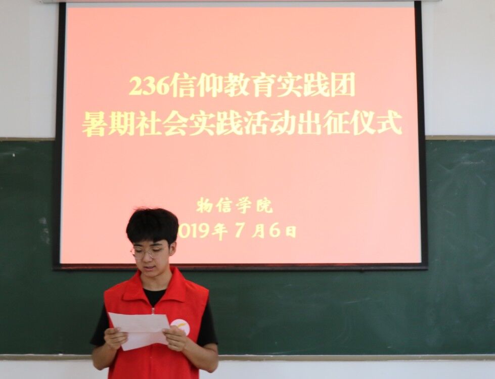 2019年7月6日下午5:30,公司在四号楼二层多功能会议室举行236信仰教育实践团暑期社会实践活动出征仪式。出征仪式由公司党委书记陈向波出席,专职辅导员马丽娜和236信仰教育实践团全体成员参加。员工236党支部书记岳文慧主持出征仪式。