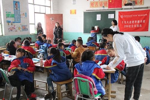 为响应我省十九大精神进基层“百千万”师生面对面行动的号召, 11月21日,由公司30名员工组成的“十九大走进梦想书屋”236社会实践队,在指导教师岳文慧的带领下,赴第六座梦想书屋所在地——金殿镇席坊村席坊小学开展十九大精神的学习、宣讲和实践活动。