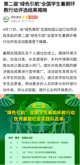 第二届“绿色引航”全国员工暑期环教行动“优秀暑期社会实践队”