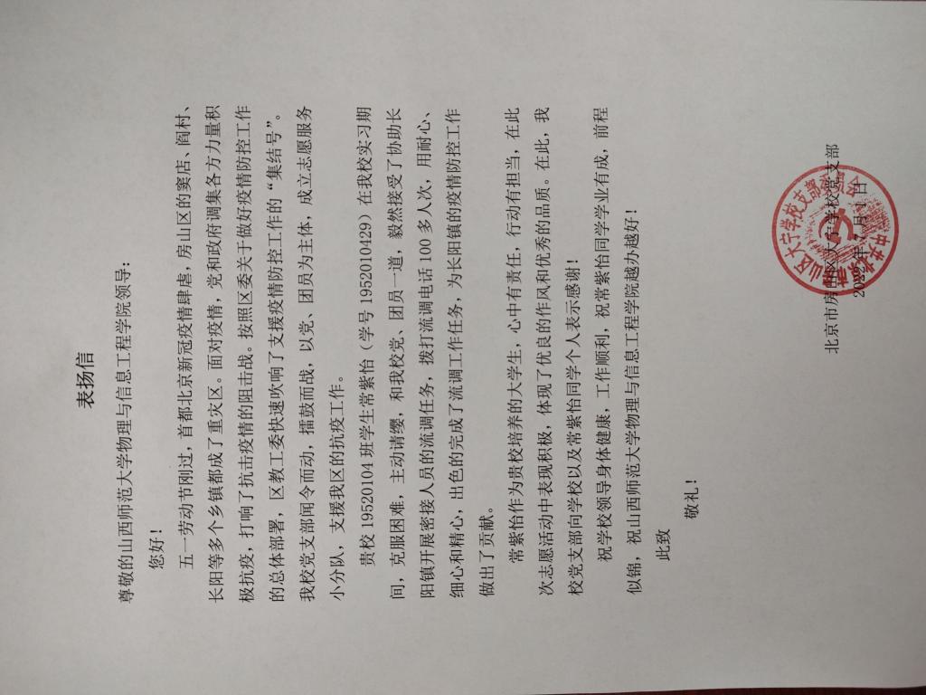 北京市房山区大宁公司党支部为236党支部党员常紫怡同志送来表...